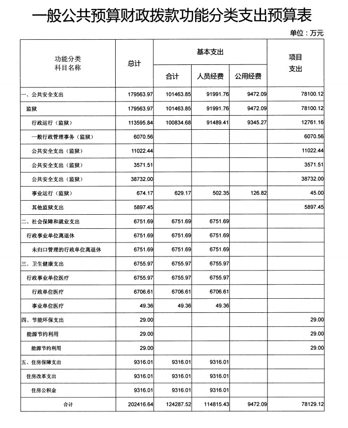 吉林省监狱管理局2019年一般公共预算财政拨款功能分类支出预算表