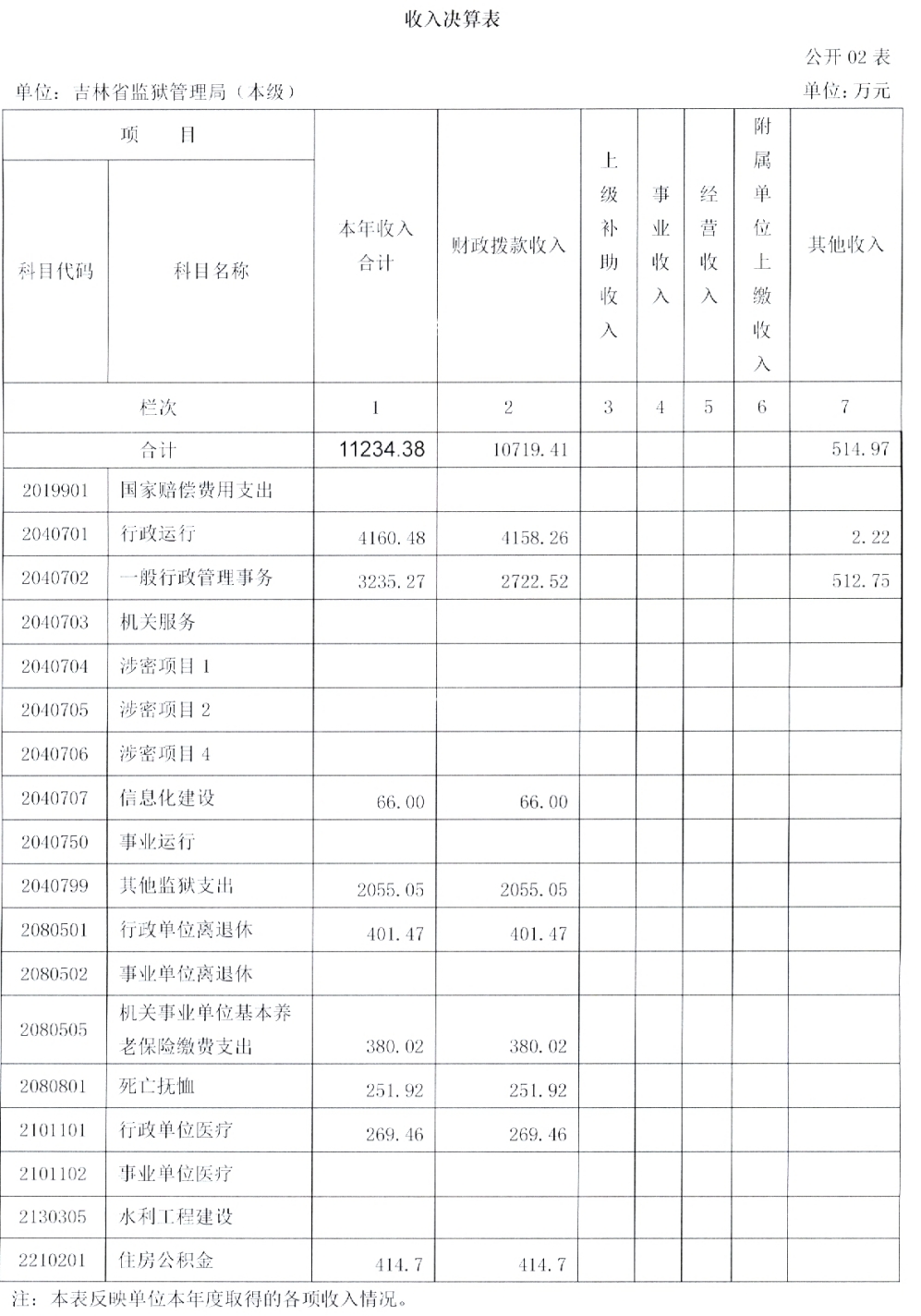 2023年度吉林省监狱管理局(本级)部门决算收入决算表