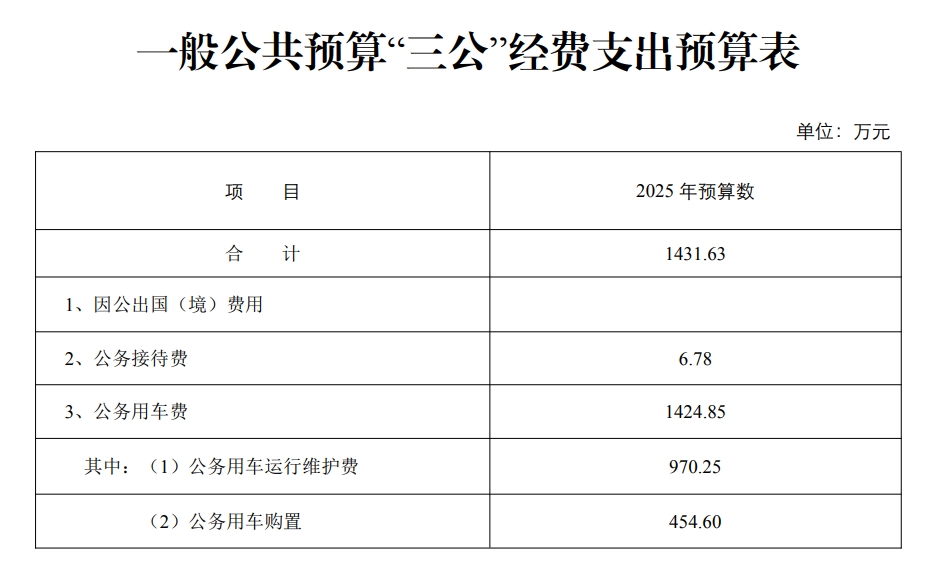 吉林省监狱管理局2025年部门预算一般公共预算“三公”经费支出预算表