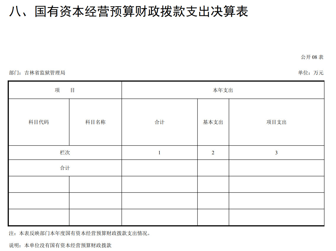 吉林省监狱管理局2024年度部门决算国有资本经营预算财政拨款支出决算表