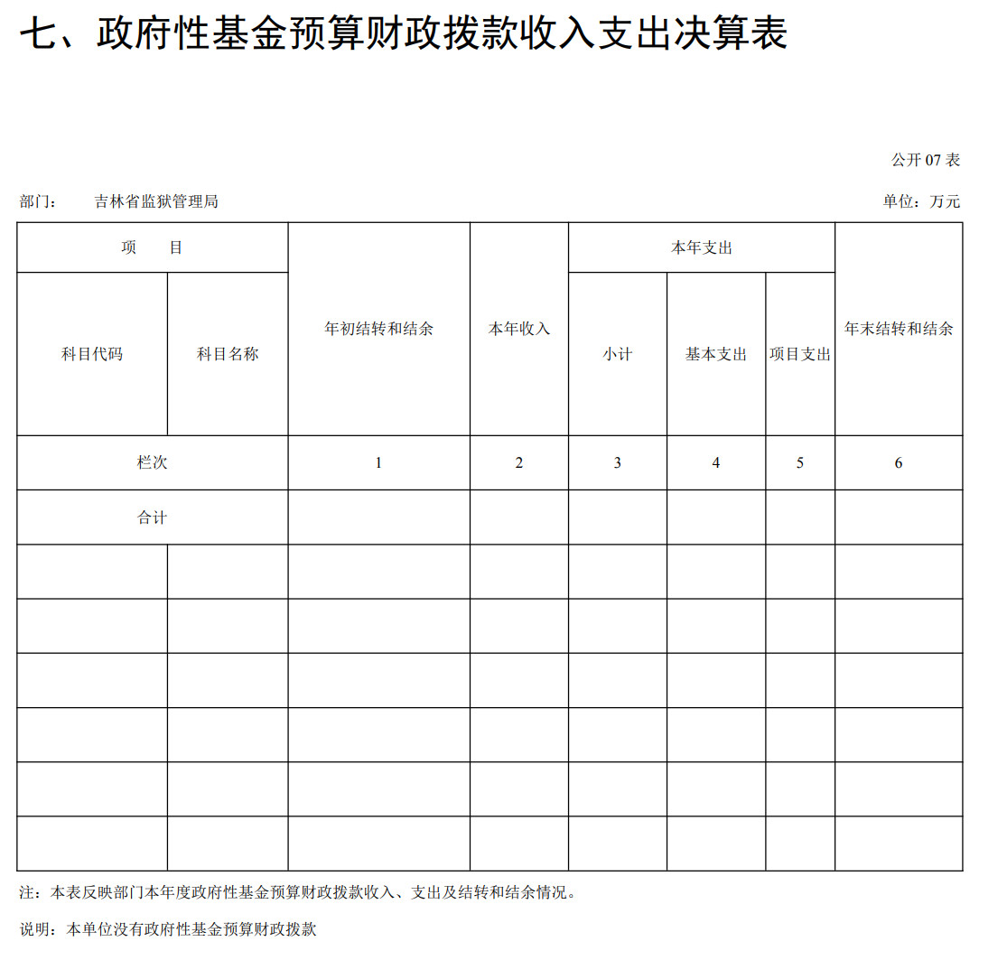 吉林省监狱管理局2024年度部门决算政府性基金预算财政拨款收入支出决算表