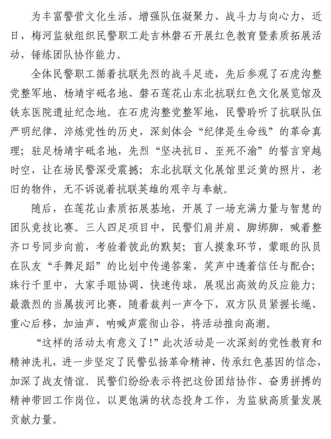 梅河监狱组织开展红色教育暨素质拓展活动