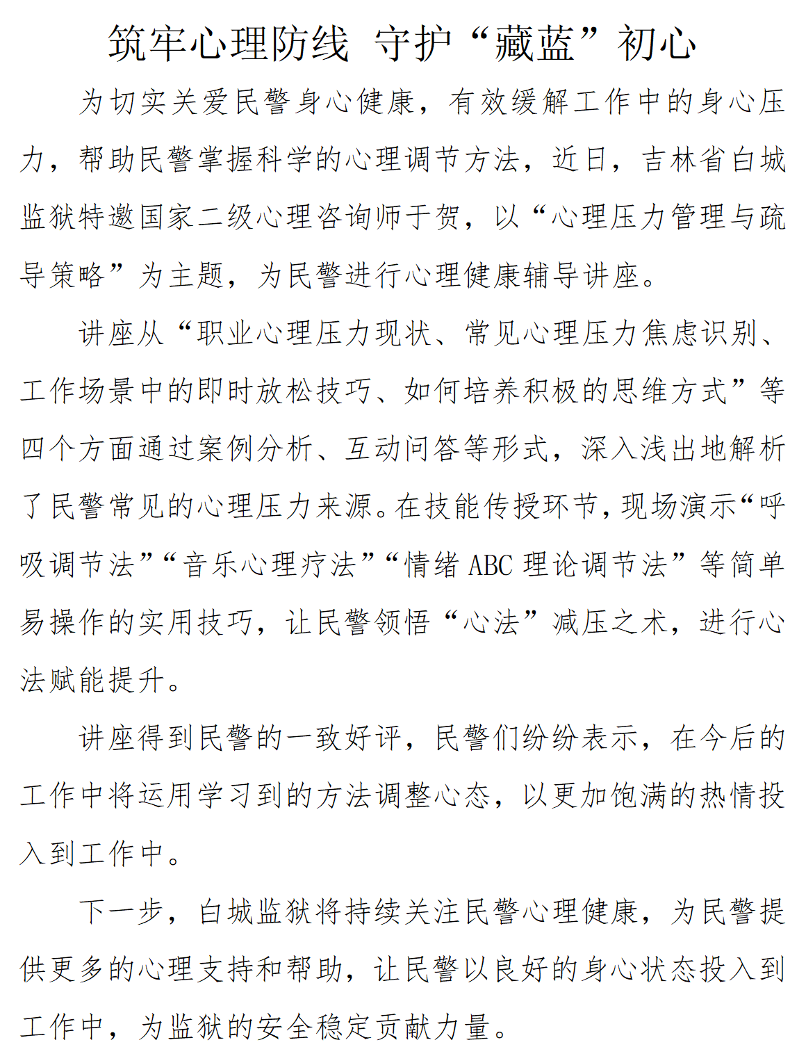 筑牢心理防线 守护“藏蓝”初心