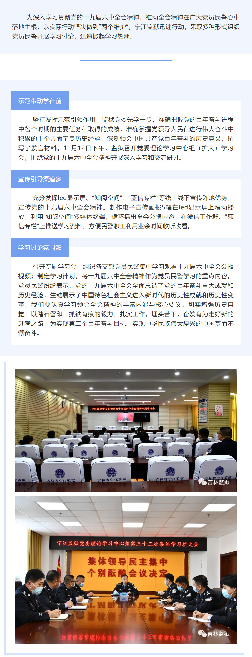 宁江监狱迅速掀起学习党的十九届六中全会精神热潮