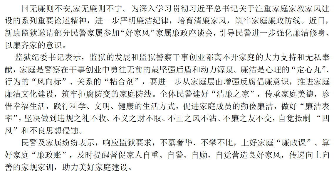 新康监狱召开家属廉政座谈会
