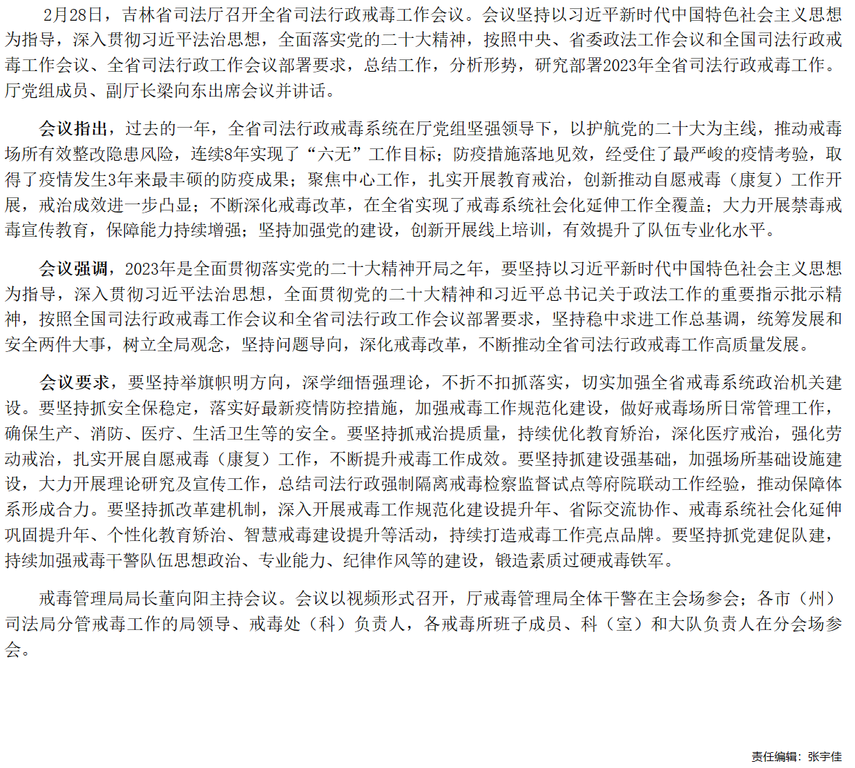 吉林省司法厅召开全省司法行政戒毒工作会议