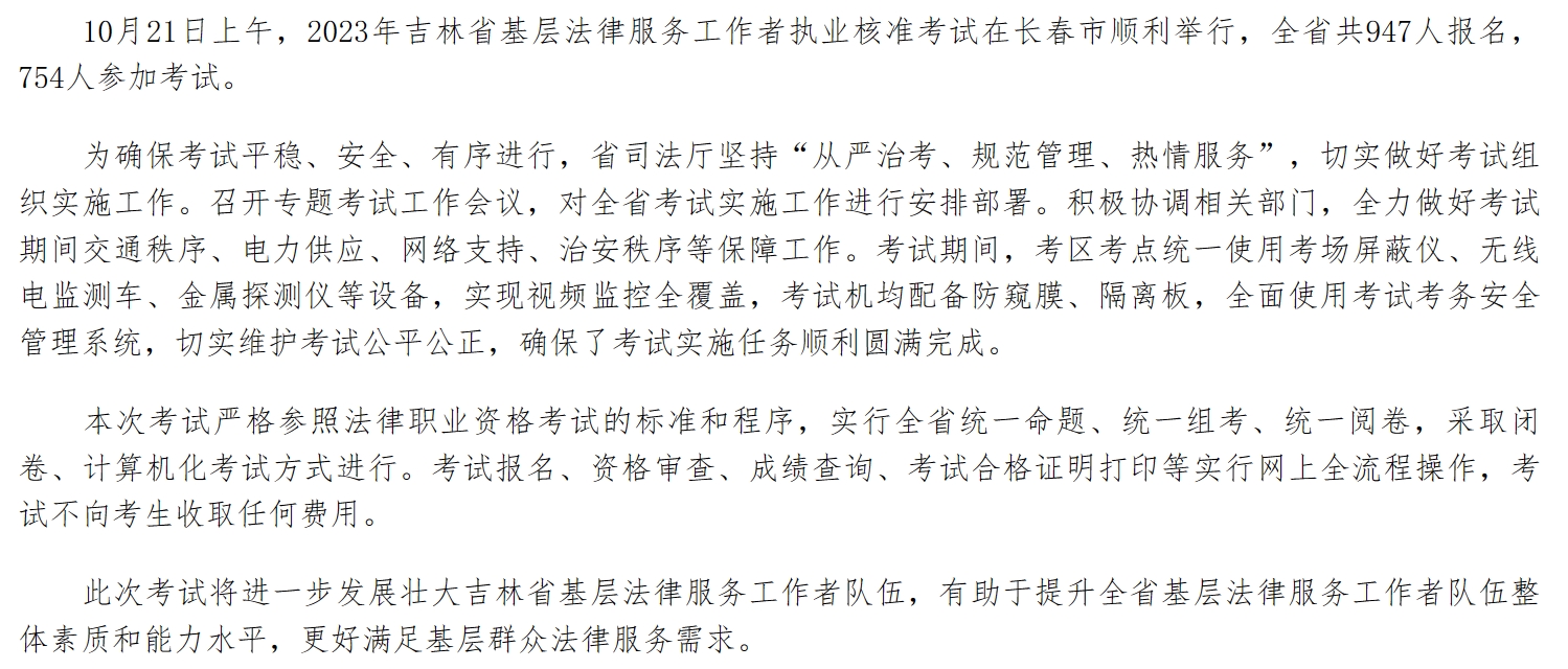 2023年吉林省基层法律服务工作者执业核准考试在长春顺利举行
