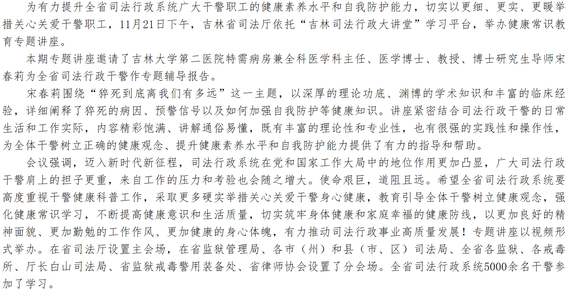 吉林省司法厅举办全省司法行政系统健康常识教育专题讲座