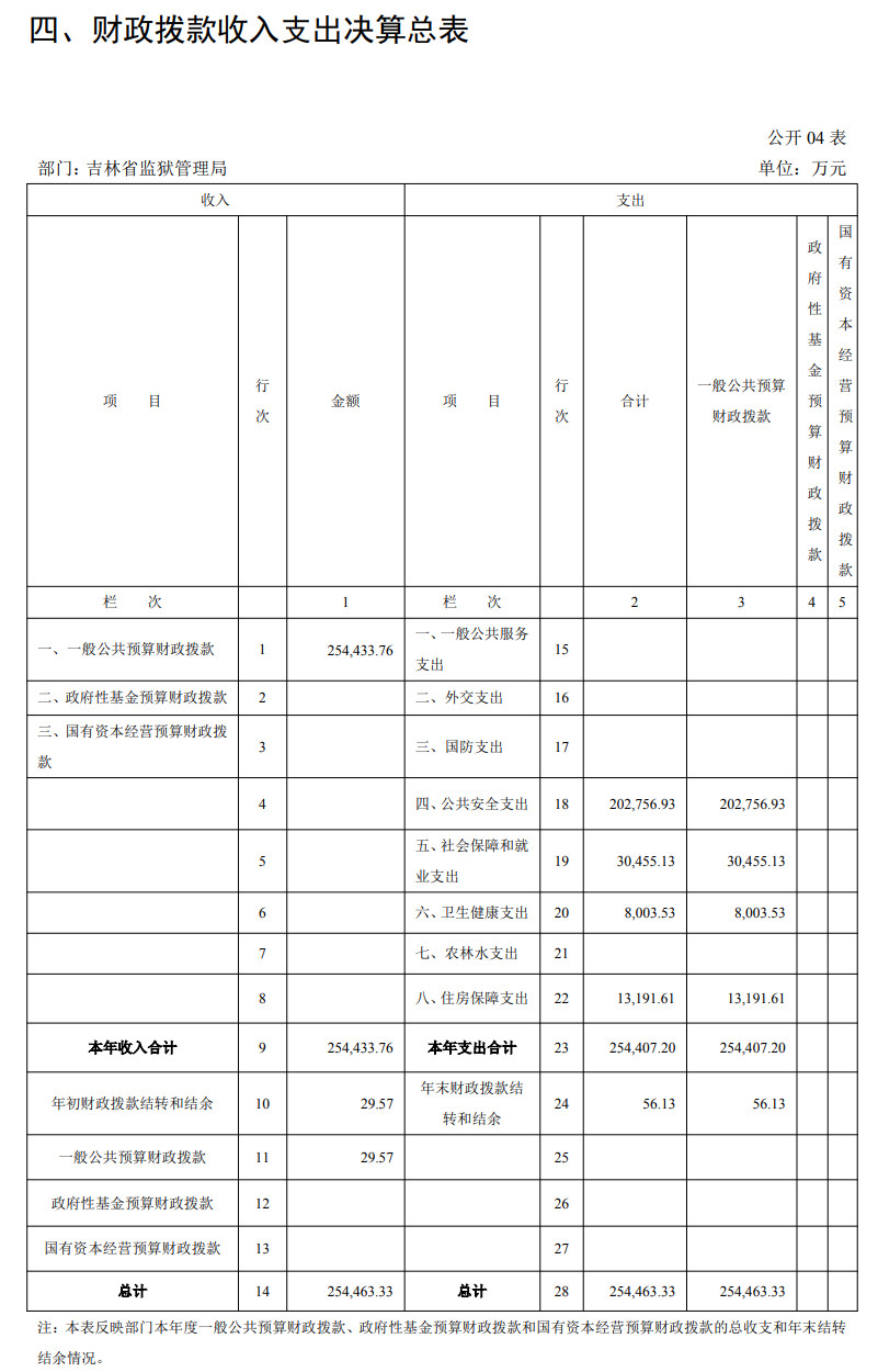 吉林省监狱管理局2024年度部门决算财政拨款收入支出决算总表