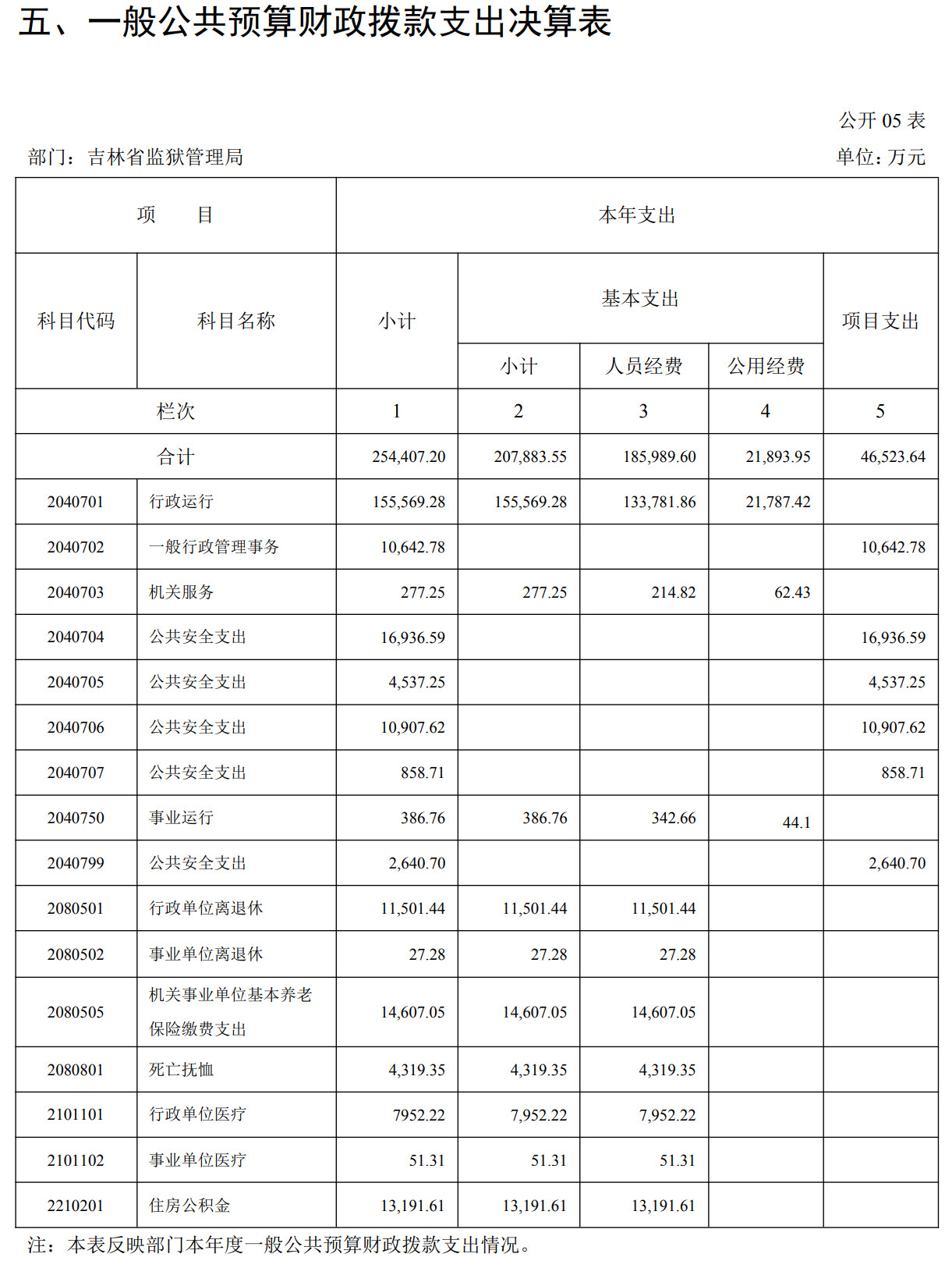 吉林省监狱管理局2024年度部门决算一般公共预算财政拨款支出决算表