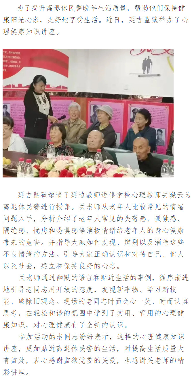延吉监狱组织开展离退休民警心理健康知识讲座