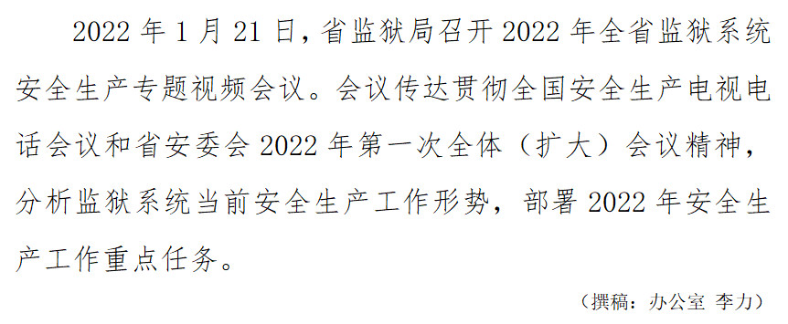 全省监狱系统召开2022年安全生产专题视频会议